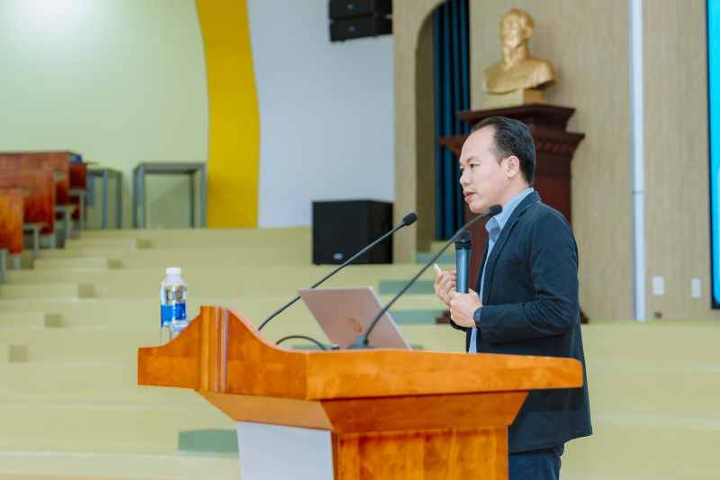 Dr. Le Khanh Duy from the University of Science shared about AI research serving bioinformatics. Additionally, the expert affirmed that humans are the focal point of research activities related to AI.