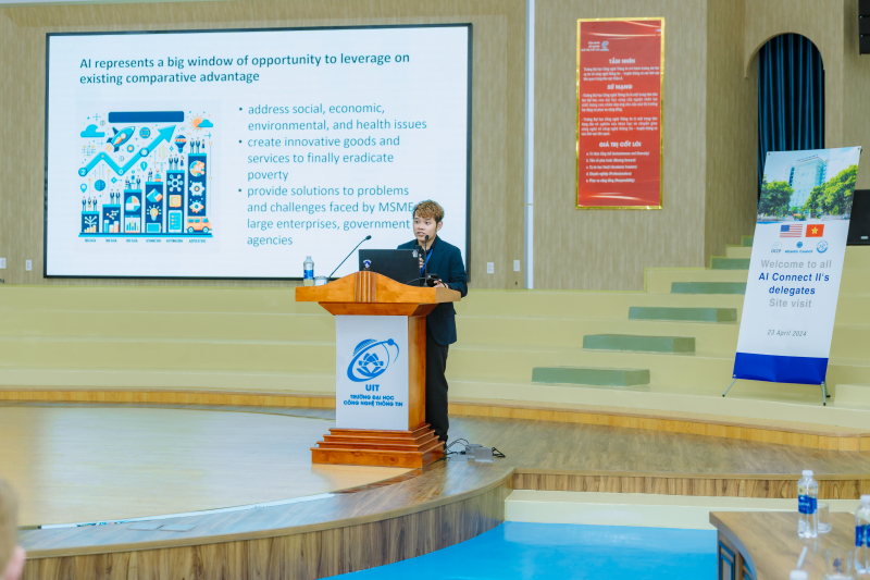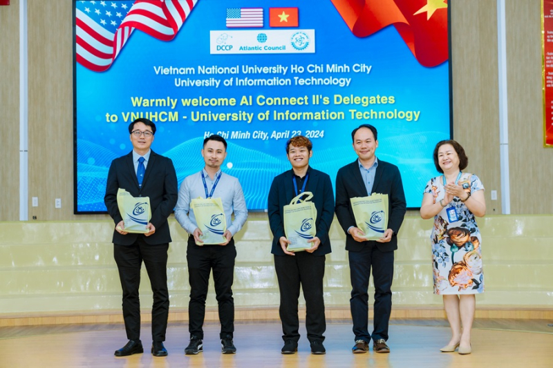 The workshop was part of the Site Visit Program, organized by the University of Information Technology in collaboration with the University of Technology and the University of Science. This activity was within the framework of the AI Connect II Workshop organized by the Ministry of Science and Technology in collaboration with the US Department of State through the non-governmental organization Atlantic Council (USA).