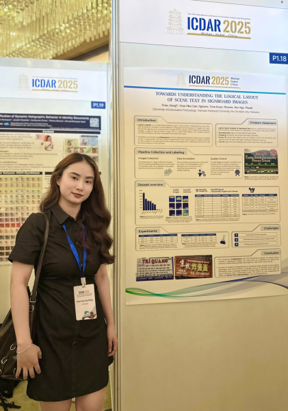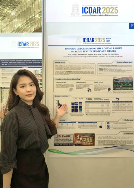 Chia sẻ về cảm xúc khi bài báo của mình được chấp nhận tại hội nghị quy tín, Cẩm Nguyên cho hay “Khi nhận được thông báo rằng bài báo của nhóm đã được chấp nhận tại ICDAR 2025, chúng em thật sự cảm thấy vừa bất ngờ vừa xúc động. ICDAR là một trong những hội nghị hàng đầu thế giới về nhận dạng tài liệu và thị giác máy tính, nên việc được góp mặt tại một hội nghị lớn và uy tín thế này là một cột mốc vô cùng ý nghĩa đối với chúng em”. Hội nghị ICDAR 2025 (International Conference on Document Analysis and Recognition) là một trong những hội nghị uy tín hàng đầu thế giới trong lĩnh vực Xử lý tài liệu và Nhân dạng mẫu.